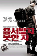中文片名:絕不原諒 英文片名:The Unforgiven 南韓上映日期:2005/11/18 台灣上映日期:2006金馬影展 國別:南韓 類型:劇情、驚悚、犯罪 本片榮獲釜山影展國際影評人獎、觀眾票選獎 導演:尹鐘斌 編劇:尹鐘斌 演員:何正宇(謊顏)、尹鐘斌 製片預算 / 全韓觀影人次:19,000美元 / 尚未 韓文官方網站:http://www.unforgiven.co.kr/ 一區DVD:尚未 三區DVD:2006/01/20,點次購買! 劇情簡介:本片以入伍服役青年的故事為主,描述軍隊中潛藏的暴力、人性甚至同性戀問題。 在一個炎夏晚上,泰君致電給自己國中時代的同學宋洋(何正宇)。不過,宋洋是泰君服兵役時的學長。當兩人見面時,仍未退伍的泰君欲言又止。兩人嘗試回憶在軍隊時的日子,泰君常常受到宋洋保護而遭到部隊中其他弟兄排擠。但當宋洋退伍後,仍在服役的泰君噩夢才開始,這個噩夢的受害者並非只有他一個…… 影評:★★★★ [4/4] 預告片: |