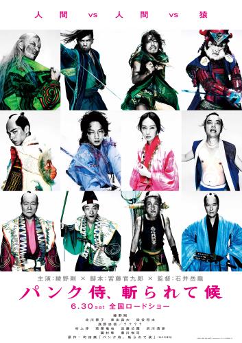 日文片名:パンク侍、斬られて候 英文片名:Punk Samurai Slash Down 日本上映日期:2018/06/30 台灣上映日期:2018/11/23 國別:日本 類型:動作、劇情 導演:石井岳龍 編劇:宮藤官九郎(舞妓哈哈哈) 演員:綾野剛(白雪公主殺人事件)、北川景子(我的恐怖室友)、染谷將太(寄生獸)、東出昌大(明天,我要和昨天的妳約會)、淺野忠信(沈默)、永瀨正敏(KANO) 製片預算 / 日本票房:不明 / 250,850,028日圓(3週) 日文官方網站:http://www.punksamurai.jp/ 一區DVD:尚未 三區DVD:尚未 各國原版海報:尚未 劇情簡介:改編自龐克歌手兼芥川獎得主町田康同名原著小說。故事發生在日本江戶時代,分明是無業遊民卻自稱「超人劍客」的浪人掛十之進(綾野剛 飾演),因為他的虛張聲勢而引起超乎想像的災難,特異角色接連登場!形單影隻的神秘美女(北川景子 飾演)、遭遇困境就會暈倒的草莓族(染谷將太 飾演)、死腦筋的主子(東出昌大 飾演)、魅力新興宗教領袖(淺野忠信 飾演)、肖想當武士的……猴子(永瀨正敏 飾演)……,一億隻猴子對抗三千大兵,除了人類與人類間的戰爭,還有人(ㄔㄨㄣˇ)類(ㄉㄢˋ)和猴子的戰爭,一場世紀大混戰,就此展開! 站長放洋班影評:尚未