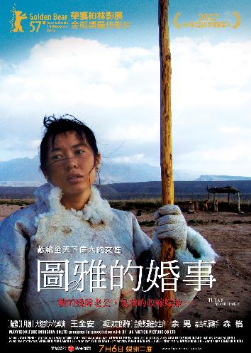 中文片名:圖雅的婚事 英文片名:Tuya's Marriage 中國上映日期:2006/09/21 台灣上映日期:2007/07/06 國別:中國 類型:劇情 本片榮獲柏林影展最佳影片金熊獎 導演:王全安(月蝕) 編劇:王全安(月蝕)